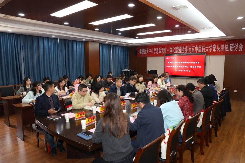 为全面落实立德树人根本任务,深入贯彻教育强国战略部署,推动大中小学思政教育一体化联盟工作落地,4月10日,南京中医药大学召开2026年栖霞区大中小学思政教育一体化联盟(南京中医药大学牵头单位)建设研讨会。我校党委常委、宣传部部长刘晓,南京市栖霞区教育局副局长陈婷婷,马克思主义学院·医学人文学院负责人、思政课教师代表,相关职能部门和学院负责人,以及南京市燕子矶中学、南京仙林外国语学校、南京市金陵中学仙林分校中学部等栖霞区7所中小学的负责人和教师代表等近50人出席会议。研讨会由马克思主义学院·医学人文学院院长肖安宝主持。研讨会现场马克思主义学院党总支书记张艳萍在致辞中指出,本次联盟共建是推进大中小学思政课一体化建设需要,是落实立德树人根本任务的需要,是提升思想政治理论课教学实效性的需要,要以“联盟共建”为契机,充分发挥学校中医药文化、资源优势及省重点马院的引领和辐射带动作用,与各中小学广泛开展教学研讨、思政精品课程展示、中医药文化科普等活动,深入探索新时代具有中医药文化特色的“大中小学思政课一体化”教育改革创新。陈婷婷表示,栖霞区中小学教育系统与南中医的合作本具有良好的条件和前景,此次研讨