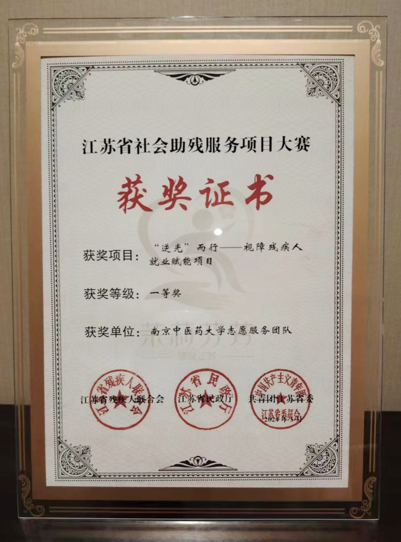 来自全省各地社会助残组织和志愿助残服务团队的50个优秀助残项目同台竞技,展现“奉献、友爱、互助、进步”的志愿服务精神,彰显“自愿、无偿、公益”的志愿服务属性。本届大赛设置就业支持、社会融入、生活照料、健康服务、文化活动等8个项目类别。经项目申报、路演答辩、评审委员会评议等环节,针灸推拿学院·养生康复学院“逆光而行—视障残疾的就业赋能者”项目以全场最高分荣获一等奖。