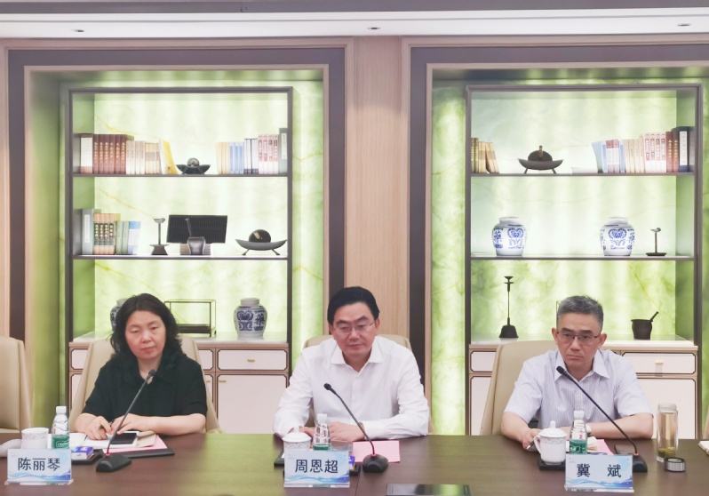 座谈会前,程海波校长与张伟进行了沟通交流,双方表达了加强合作的意愿和期望。座谈会上,周恩超对张伟一行的到访表示欢迎,并简要介绍建校七十年来的办学历程与成果。他指出,恰逢七十周年校庆之际,学校提出创建中国特色、中国风格、中国气派一流中医药大学建设新目标,强化政、校、企合作,推动产、学、研协同发展,积极响应国家战略需求,不断增强高校服务地方经济发展的能力,是我们的重要任务之一。南京中医药大学资产经营公司,作为学校服务社会的窗口,近年来在中医药特色门诊服务,中医药特色药膳康养,中医适宜技术推广方面做了很多探索,得到社会广泛好评。希望双方以此次交流为契机,充分沟通、资源互补、互学互鉴,积极推进相关合作,为服务地方新质生产力发展贡献力量。