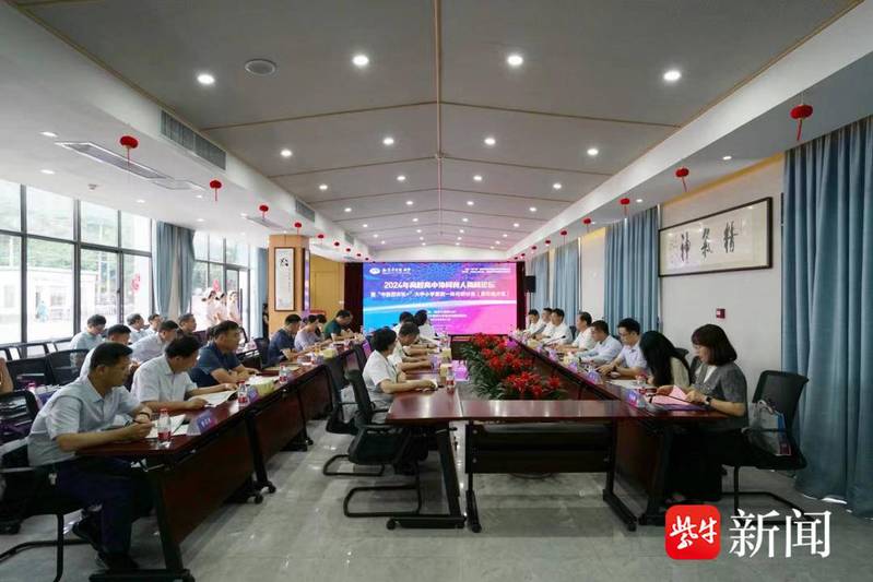 南京中医药大学学生工作处处长陈小进介绍了学校专业设置、本科招生录取和“双高”合作情况,校团委副书记邵刚介绍了中医药文化进中小学实践活动开展情况。与会人员围绕“高校高中如何贯通培养中医药拔尖创新人才”和“‘中医药文化+’大中小学思政一体化建设思考”等展开研讨。