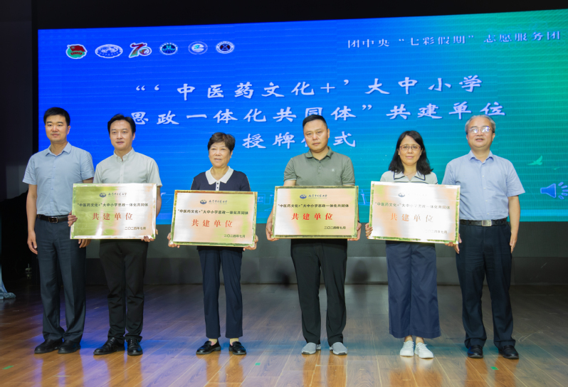 为夯实大中小学思想政治教育一体化之基,仪式现场,我校还与金陵小学、常州市金坛区直溪中心小学明珍实验学校、南京市第五初级中学结成“‘中医药文化+’大中小学思政一体化共同体”共建单位。此举不仅标志着在中医药文化教育领域的深度合作,更预示着一条以文化人、以医润心的崭新道路正徐徐铺展。共建单位将共同探索中医药文化进校园的新模式、新路径,为培养更多热爱并传承中医药文化的青少年贡献力量。