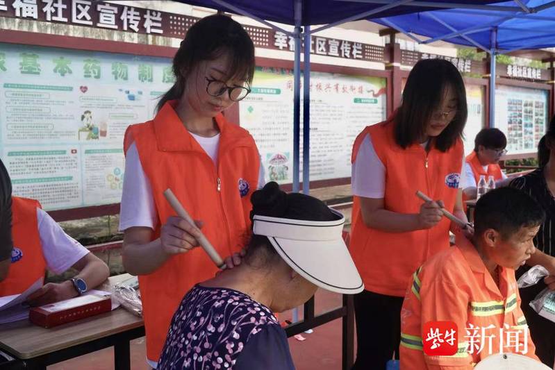 为实施积极应对人口老龄化国家战略,完善老年健康支撑体系,发挥中医药在健康养老方面的优势和作用,7月4日,由南京中医药大学主办,养老服务与管理学院、党委统战部、校团委和中共剑河县委社会工作部、县委统战部、剑河县卫生健康局、民政局、县团委承办,剑河县民族中医院、仰阿莎街道办事处共同协办的南京中医药大学“岐黄助老工程”——“橙小青”养老志愿服务团走进贵州剑河县,在“全国示范性老年友好型社区”仰阿莎街道幸福社区举办首站活动。