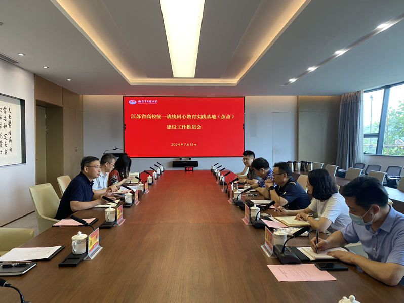 7月15日下午,江苏省高校统一战线同心教育实践基地(茧斋)建设工作推进会在我校仙林校区召开。党委统战部、农工党基层委员会、图书馆博物馆、第一临床医学院相关负责同志以及基地建设联络员参加会议,会议由党委统战部常务副部长蒋龙魁主持。