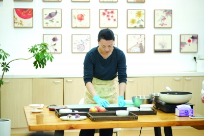 金陵药膳非遗工坊负责人陈小娇示范如何制作玉兰花酥。