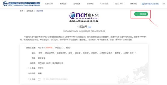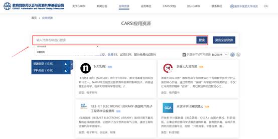(5)访问CARSI应用资源,选择数据库进行检索;
